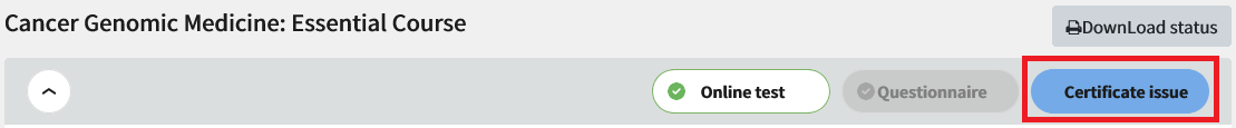 - The issue certificate button will become active after passing the online test and completing the questionnaire. And you will be able to issue the certificate of completion.