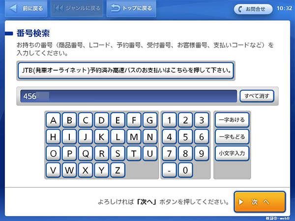 - 「番号入力」ボタンを押してください。