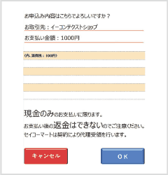 - お申込み時内容を確認のうえ、「OK」ボタンを押してください。